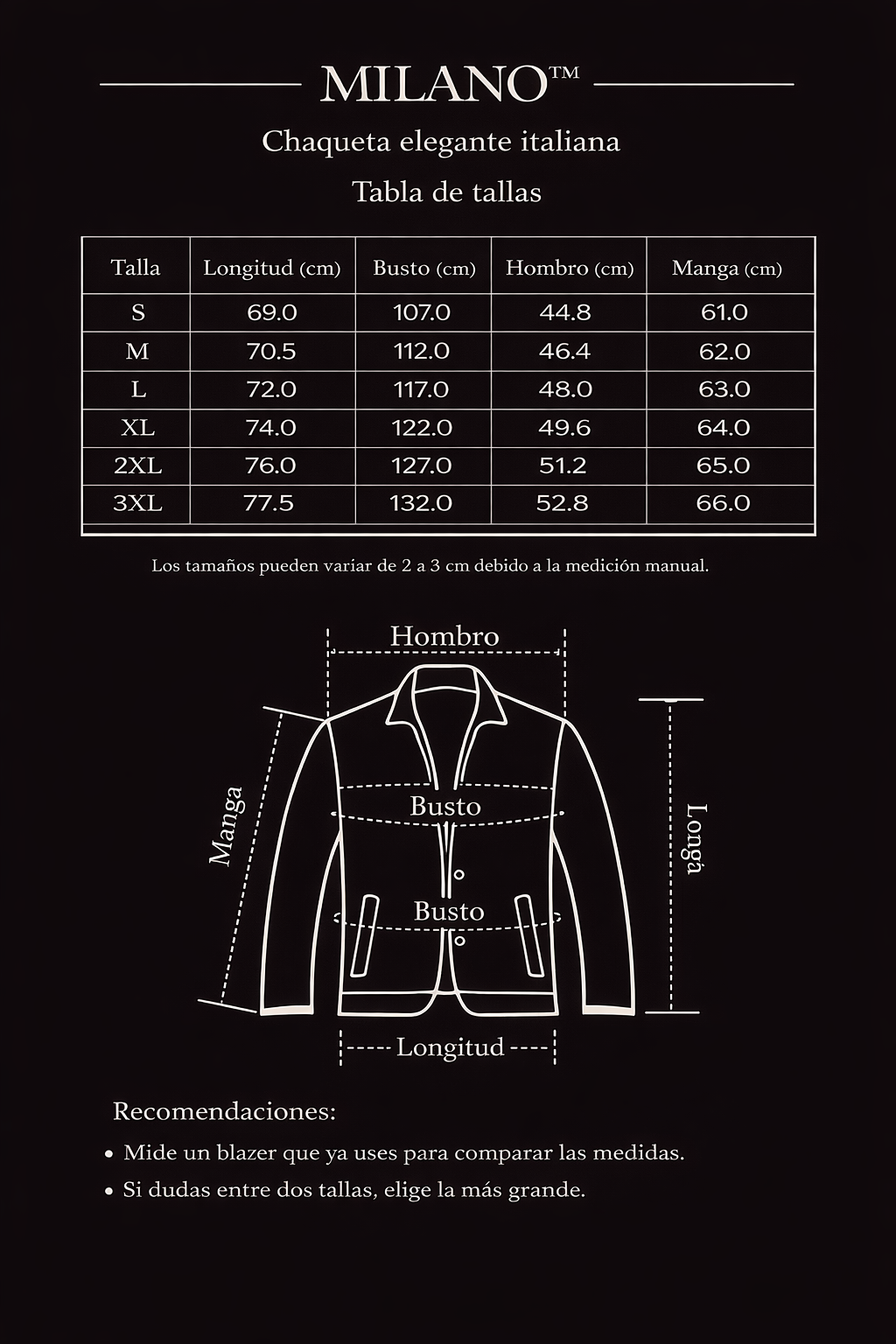 Recomendación: Si dudas entre dos tallas, elige la más grande para un ajuste cómodo con capas de invierno.
